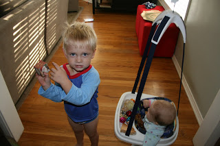 It's official...Jeremy is head over heels in love with our neighbors Jack & Annie. I think they feel the same way. Jeremy woke up from his nap yesterday and when I brought him out to the living room to watch Sesame Street, Jack & Annie were waiting patiently outside our bay window for him to come outside. They even said they were "wondering where we were". So, they played on the swing (as always), played catch and Annie and Jeremy took a carton of markers to an old box. They eventually needed flashlights because it was too dark to see. I'm sure they will be out playing again today!